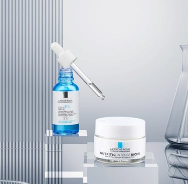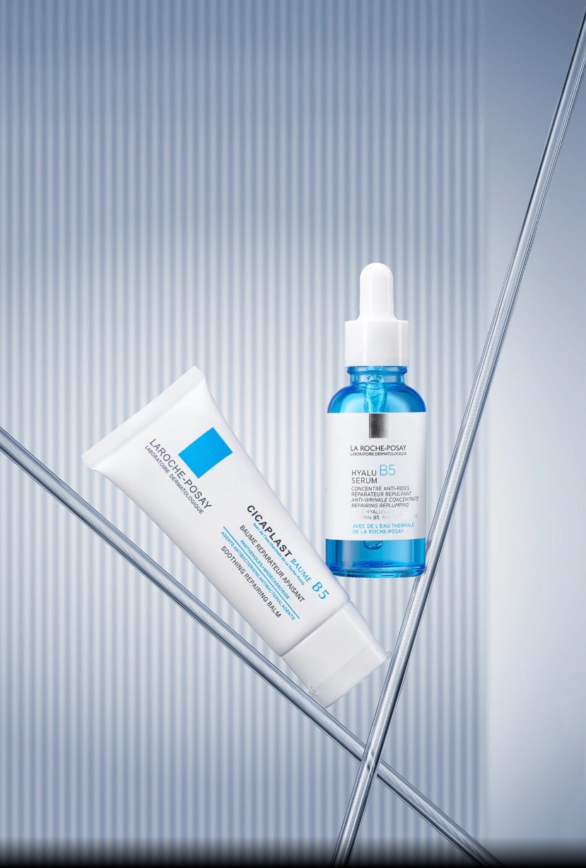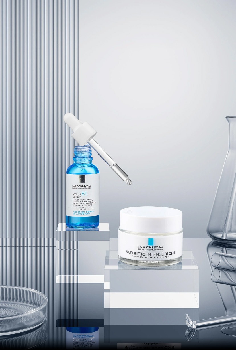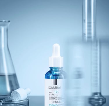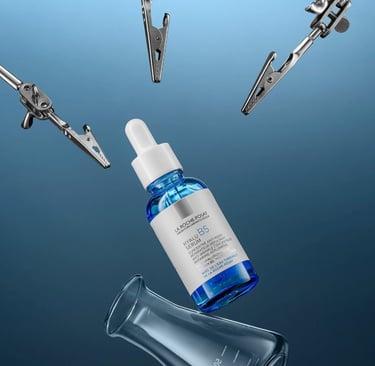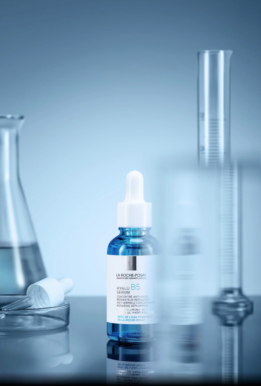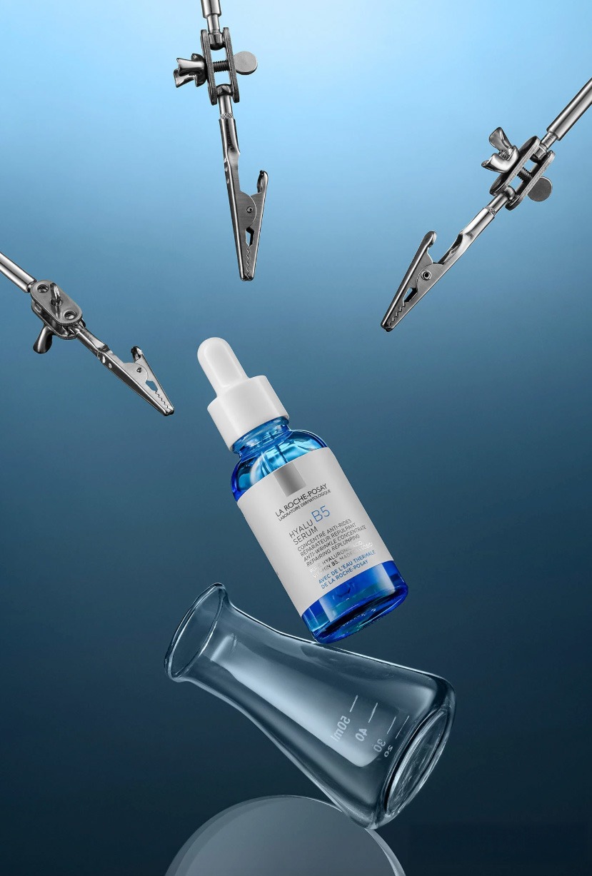 Shooting serum B5 product from La Roche Posay with labolatory concept.
